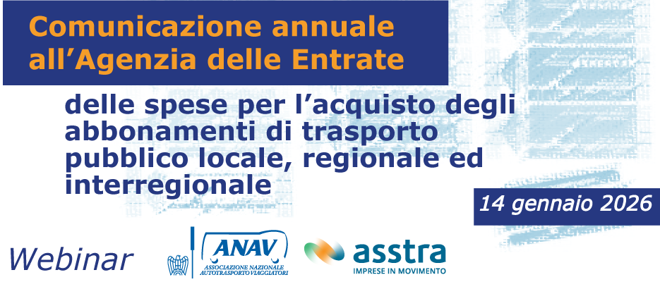 SAVE THE DATE 14 gennaio 2026 - WEBINAR ASSTRA "Comunicazione all'Agenzia delle Entrate spese per l'acquisto degli abbonamenti trasporto pubblico 2025"